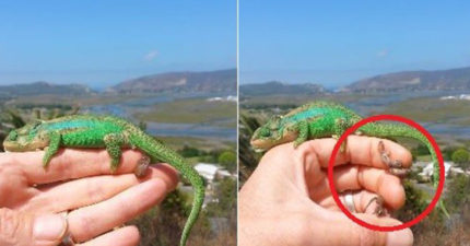 變色龍媽媽向主人招手求救「讓我在你手上生」…0:04「瘋狂排出」原來不得不在手上生!(影片)