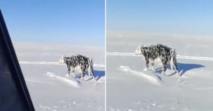 牛牛散步一半突然不動 近看「整隻冰封」路人傻眼