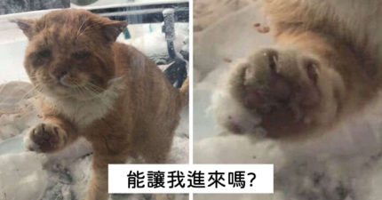 下大雪驚見窗外「虛弱胖橘」 肉球輕輕敲門:可以讓我取個暖嗎?