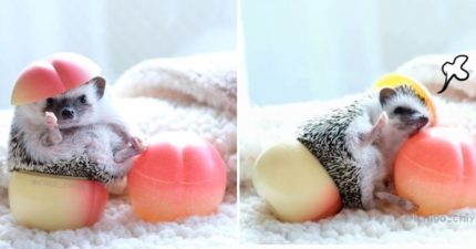 圓圓小刺蝟頂桃子 「緩速跌倒」整張臉懵掉:我是誰我在哪⊙ω⊙