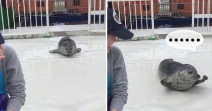 玩123木頭人結果打滑 肥海豹趕快比YA「緩和一下尷尬」
