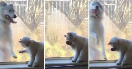 出來玩啦!窗外「彈跳月月」騷擾貓咪 網扶額:這智商的差距…