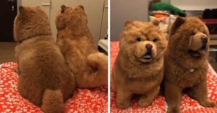 尾巴捲度都相同!肥鬆獅和娃娃並坐 「光看背面」你一定會認錯