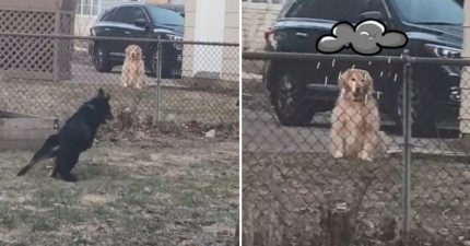 倫家也想玩球球QAQ阿金緊盯鄰居家彈跳黑狗 哀怨臉讓人笑到哭