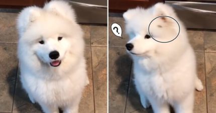 毛太厚了啦!餅乾一丟~直接消失毛海裡 薩摩耶滿頭黑人問號
