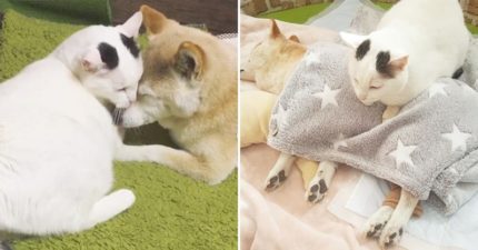 老友專屬感應!貓咪鑽狗窩搞自閉 下秒獸醫打來:住院柴犬斷氣了