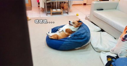 說好的迎接?柯基爽躺懶骨頭 看電視嘿嘿嘿笑…把拔傻眼