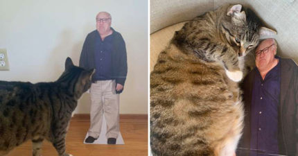 貓皇戀愛「臭臉阿杯」人型立牌 每天都「抱抱睡」鏟屎官超傻眼