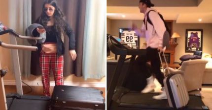 居家隔離挑戰「用跑步機出國」 在機場「狂奔趕登機」完美重現