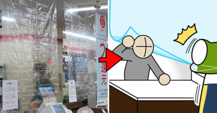 日本防疫塑膠布「被當成門簾」客人硬鑽進來嚇店員