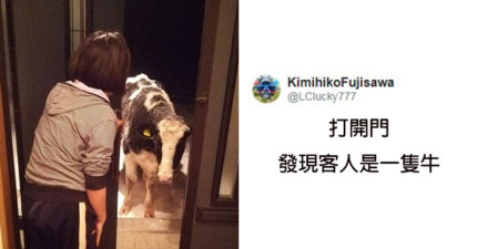 門口感應燈突然亮了…她打開門驚見「客人是一頭牛」網全笑翻:牛的報恩?