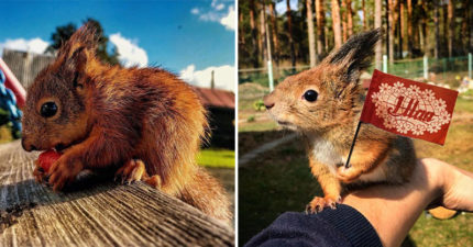 他散步發現受傷松鼠寶寶 1年後變身「最幸福松鼠」每天都有松果大餐