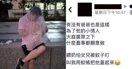 暖爸怕寶寶被蚊子咬…霸氣「披頭紗」幫前世情人餵奶 超體貼畫面被讚:根本婚紗照