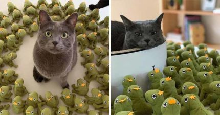 主人拍下「喵星人+青蛙大軍」爆笑日常 連睡著也「被幾百雙眼崇拜」…不愧是貓皇!