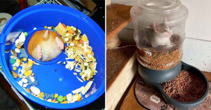 31隻毛孩「為吃不擇手段」 呆兔「整隻卡飼料罐」回神一臉懵❤