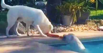 聰明狗「用繩索」拉妹妹離開泳池 努力向後救命瞬間太驚險