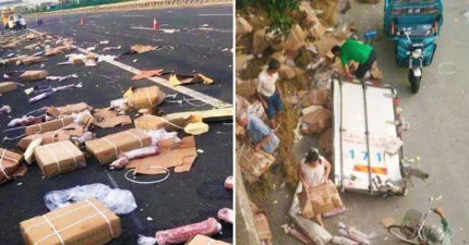 中國豬肉貨車翻覆「村民變山賊」搶走7噸肉 連車門都不放過!