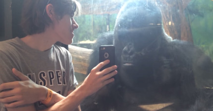 他給大猩猩看他手機裡其他大猩猩的照片,大猩猩竟然露出了超專注的癡情反應!