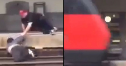 兩個男人在月台上憤怒扭打,直到火車將要把其中一人輾斃時,感人的情節就發生了!