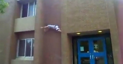 這名男子以為自己可以飛簷走壁,直到一路撐到頂樓無路可走,結果我不敢看了…