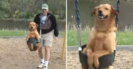 狗狗搖尾求抱坐盪鞦韆 一晃後「露出最滿足笑容」超療癒