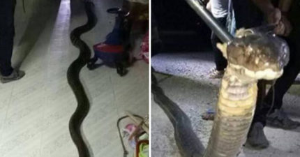 泰國「5公尺巨型眼鏡王蛇精」夜闖民宅,村民開捉前「先點蠟燭賠罪」!