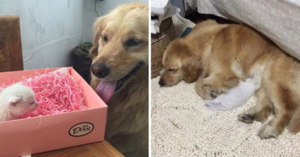 超有愛黃金路邊叼回一隻「小白貓」,主人說「自己照顧」…她聽懂了!