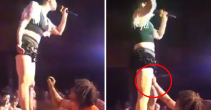 女歌手身穿「火辣熱褲」熱情演唱,台下色男伸手拔「下.體毛」炫耀,她的反應卻是…