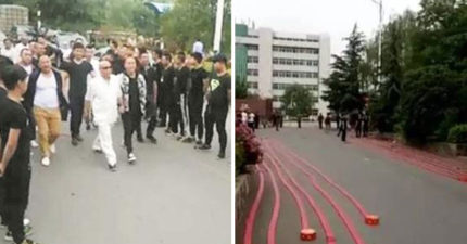 黑大老大出獄百名小弟「放鞭炮」列隊迎接,但一出來就被法院再判多關6年!