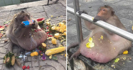 泰國27KG猴子「胖大叔」被手下孝敬餵太胖恐得糖尿病!最近被迫減肥「命運大逆轉」。