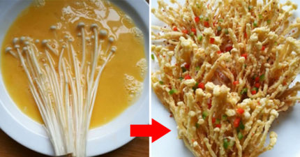 老妈牌「酥炸香脆金针菇」,「加点蛋」3分钟就完成!(食谱)