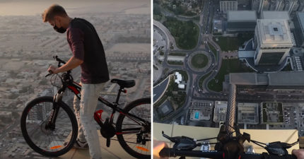 冷汗片/耍帥哥328M騎極限腳踏車 沿「60cm窗邊旋轉龍頭」挑戰風力&死.神的耐心