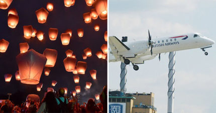 超狂天燈飆6100m「和飛機擦過」 僅差30cm「天空就爆成兩團火球」…機組背瞬間濕