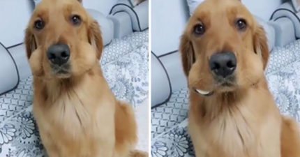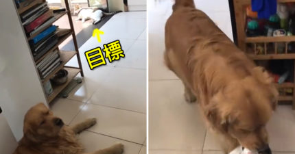 曬太陽被憨金強制叼回 主子露出「生無可戀厭世臉」:本喵已放棄掙扎!