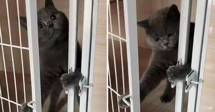 終於打開!萌貓偷開門見主人抓包 當場「懷疑貓生」:偶也不知道會這樣