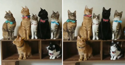影/鏟屎的抓到貓主子弱點 「魔性控制」16隻貓整齊動作…網笑:某種催眠術?
