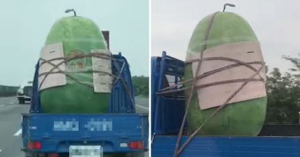 國道驚見「巨型西瓜水塔」橫行 被粗繩五花大綁要價6萬台幣!