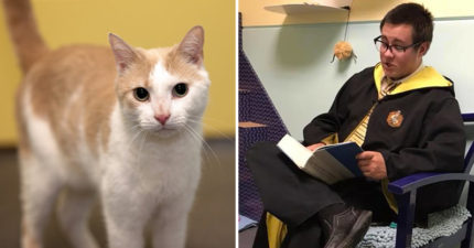 霍格華茲的魔法!盲喵怕人躲整天 男孩唸《哈利波特》成功融化