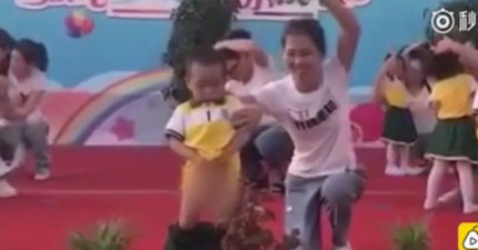 幼稚園小童跟媽媽在台上跳舞時,在眾人前「脫褲灑尿」一旁媽媽更讓人吃驚…