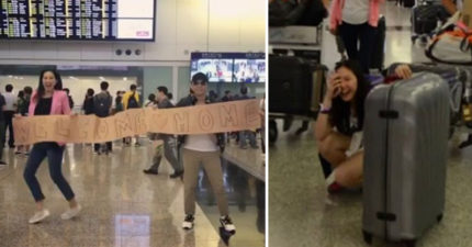 太想念出國一個禮拜的女兒,甄子丹夫婦機場「華麗迎接」讓女兒直接笑倒在地! (圖 + 影片)