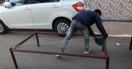 他拿一卷布條開始編織「手速快到讓你臉紅」!7分鐘後成品超完美! (影片)