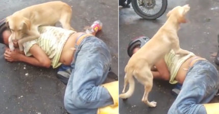 主人街上醉倒昏睡 忠心狗狗死命保護:不可以碰我的把拔!