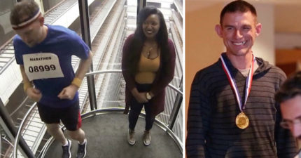 路人「亂入」電梯馬拉松,還不小心得了「冠軍」上台領金牌!
