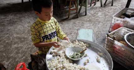 爸爸媽媽到外地工作8歲小弟弟自己每天包上萬顆餛飩,這樣才可以照顧6歲妹妹!