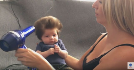 網路爆紅的「9個禮拜大的獅頭小男孩」被超辣媽媽吹頭髮,怎麼吹都獅子頭萌爆!