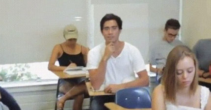 老師發現這名很專心的學生傳出了「打呼聲」 仔細一看直接理智線斷掉!