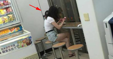 網友夜晚去便利商店看到正妹想拍照,沒想到就拍到了靈異鬼臉自己整個嚇壞。直到正妹站起來…