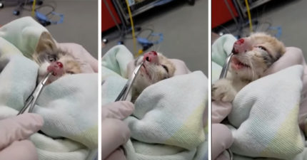 看到醫生從這隻可憐小貓咪的鼻子裡拔出來的「比手指還大的巨獸」,可能會讓你在接下來的兩天裡都全身不舒服喔…