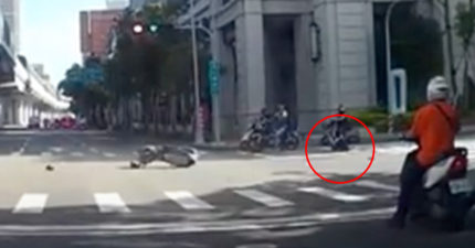 騎士被轎車撞飛後倒地卻沒有人上前幫他,PO上網還被網友罵說「是你自己欠撞」!