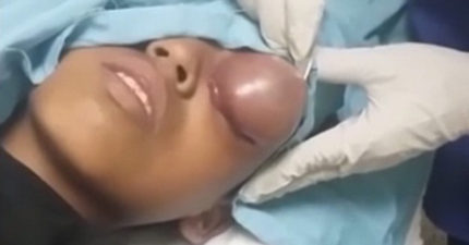 男孩的左眼被一顆像橘子一樣大的痘痘給擋住,當痘痘暴裂的時候會讓你忍不住尖叫喔!